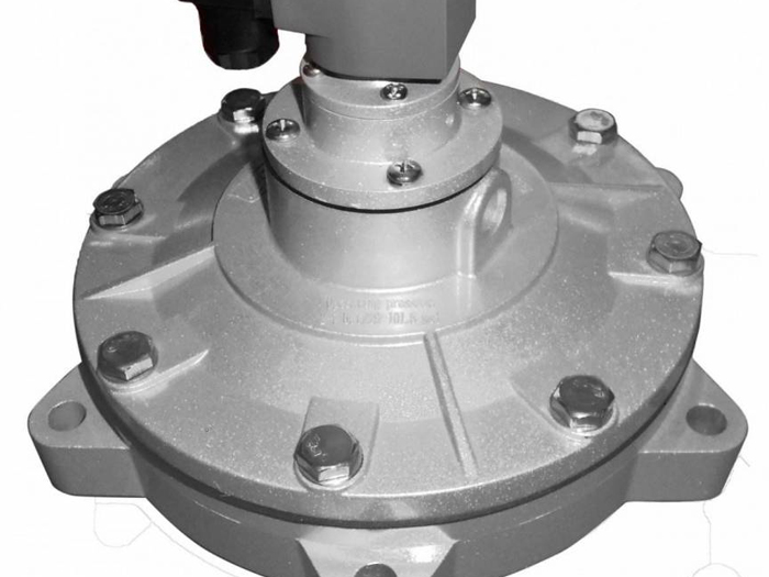 淹沒式電磁脈沖閥的工作原理當脈沖控制儀輸出信號給電磁先導(dǎo)頭時,電磁先導(dǎo)頭會產(chǎn)生磁力,推動噴吹膜片組件向下運動,從而打開氣包與閥體之間的通道。這時,氣包內(nèi)的壓縮空氣通過噴吹膜片組件的開口迅速噴出,進入濾袋內(nèi)進行清灰。同時,由于噴吹膜片組件的運動,也關(guān)閉了進氣口和排氣口之間的通道,防止了外界空氣的進入。